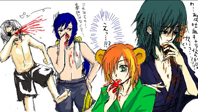 鼻血海パンが二人、吐血和服美人が二人に分けてアミダで決めました。